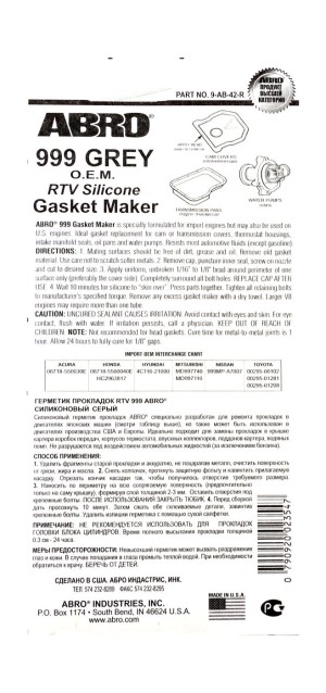Смотрите подробнее о Герметик прокладок силиконовый, серый, 42.5 г, ABRO в нашем магазине